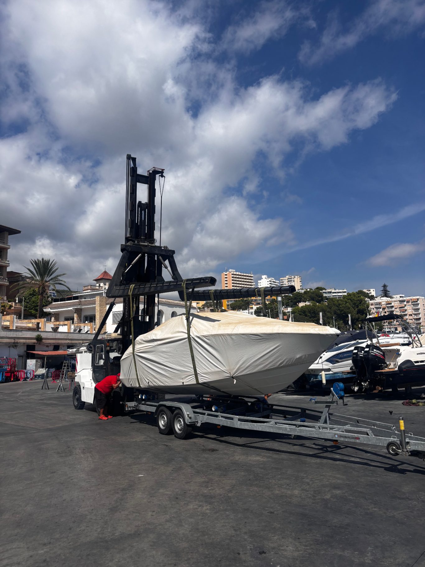 Wir übernehmen den Transport Ihres Bootes – aus dem Hafen bis zur geschützten und zuverlässigen Lieferung an Ihren gewünschten Zielort.